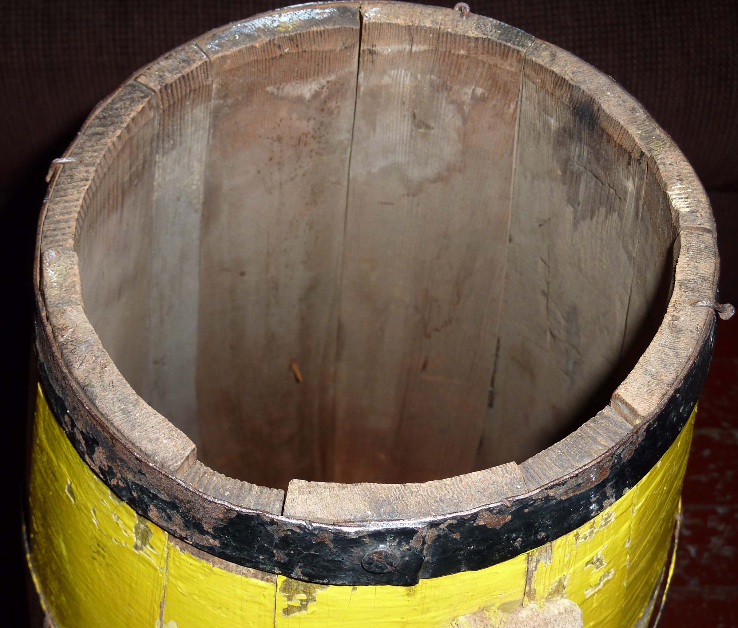 Yeah, I was thinking along the same lines, but the wood if so off, to the point of where the staves that have unbent the most are actually pushing up into the skin. And, the separation of staves makes the paint job uneven. But, I really don't think it can be bent back without messing it up. Bands need to be tightened as well but are painted black...tough call because all the rustic paint is part of what makes this piece nice. Regardless, I think it is safe to say that this drum will remain a display piece....