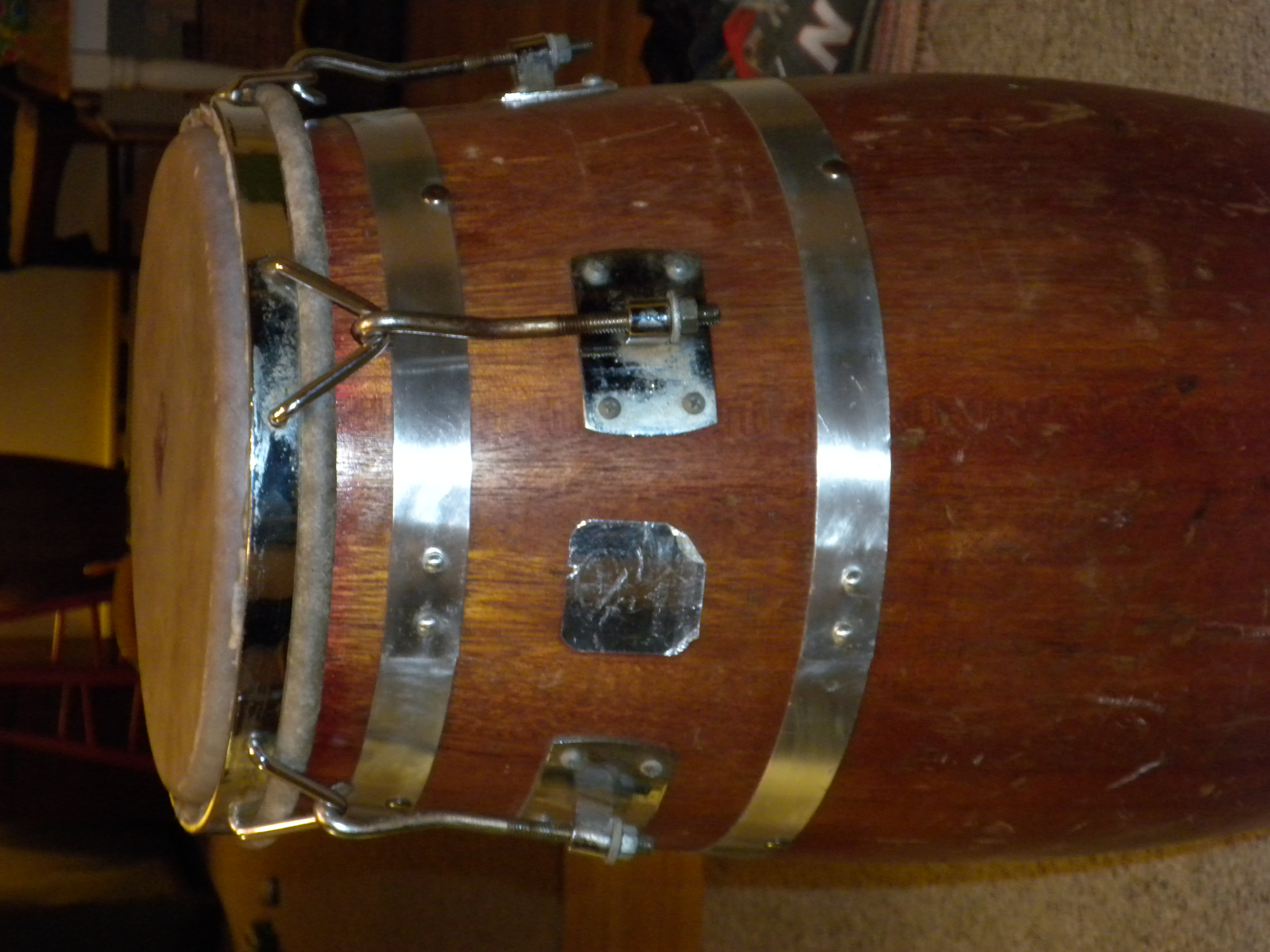I have a customer that brought me 2 80's Gon Bops to put new heads on. He asked me if i know of anyone that would buy them. The drums are a mismatch pair @ 9.75 and 10.5. The crowns are not bad the 9 inch drum has some chrome loss that is now a bit rusted but not bad & the lugs on all are working well and i will clean up and make sure they are oiled.