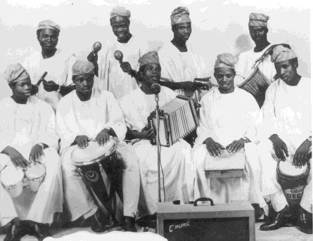 I.K. Dairo's juju band. Check out the combination of Afro-Cuban and traditional Yoruba drums.