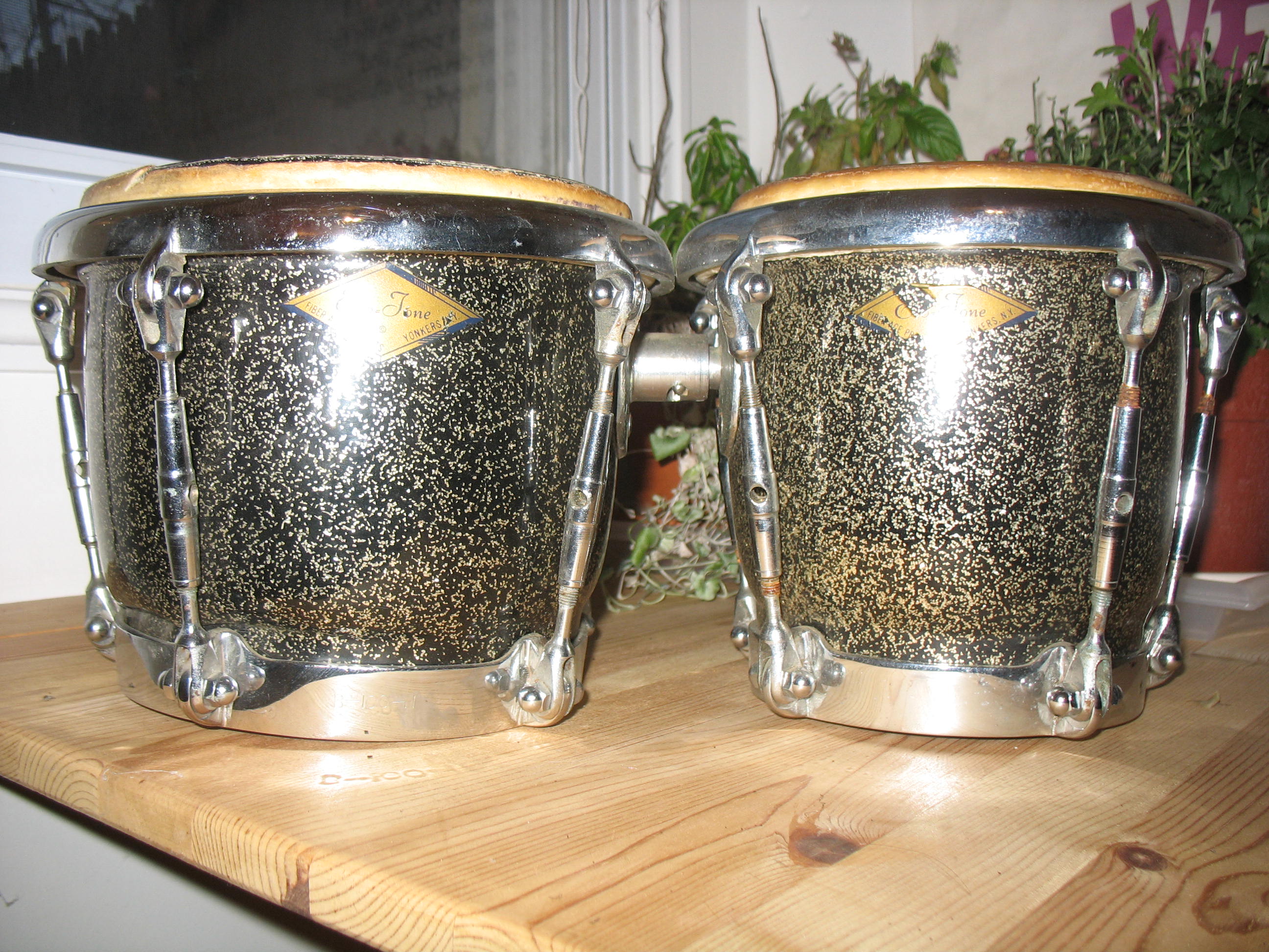 I saw those on CR and thought about it but I have to thin my heard out a bit. I had a set just like that I still have the conga with the same finish in Puerto Rico. I sold them in 78 I never got used to the wieght or discomfort but they sounded great as I remember they are very loud with a dynamic projection. Also one of the turnbuckles was wearing thin since I tuned them with a screw driver and the sharp edge on the tuning hole torn a pair of slacks while at a show, very embarising. But none the less a great set of bongo which are now very scarce enjoy them Jaqui. And be carful when you change the skins after struggling to get the skin on when trimmimg with a razor I cut too deep and ruined the head on the Hembra, LOL its funny the things you remember that you almost forgot.