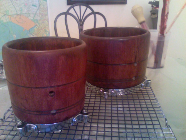 The shells after 1 coat of the blended stain.