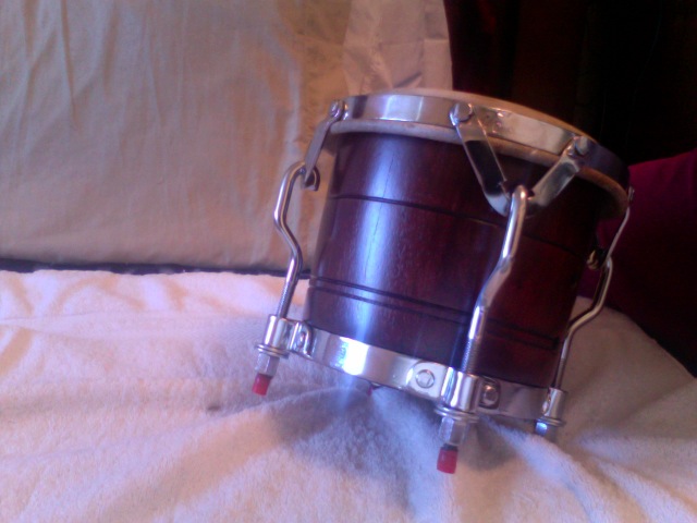 Here are photos of my JCR, great sounding bongo'. Big size, macho 7" hembra 8 7/8". It's got that Cuban look, Cuban bottoms with rivets, very strong constuction. At one point it belonged to Juancho here in the forum. Got it from Mario, is a very early JCR from the late 70's according to Cali. In prestine condition. Caribbean Caoba.