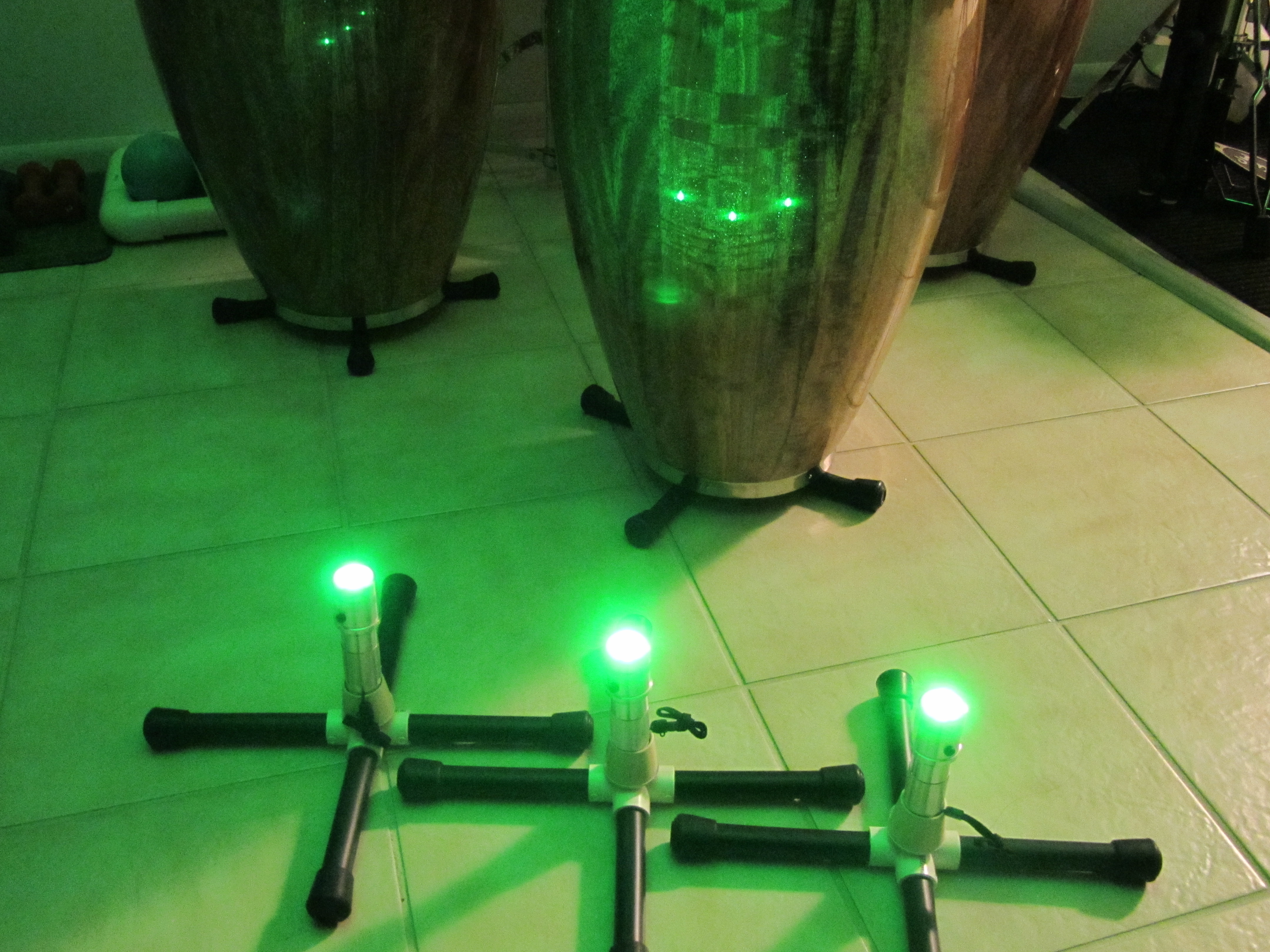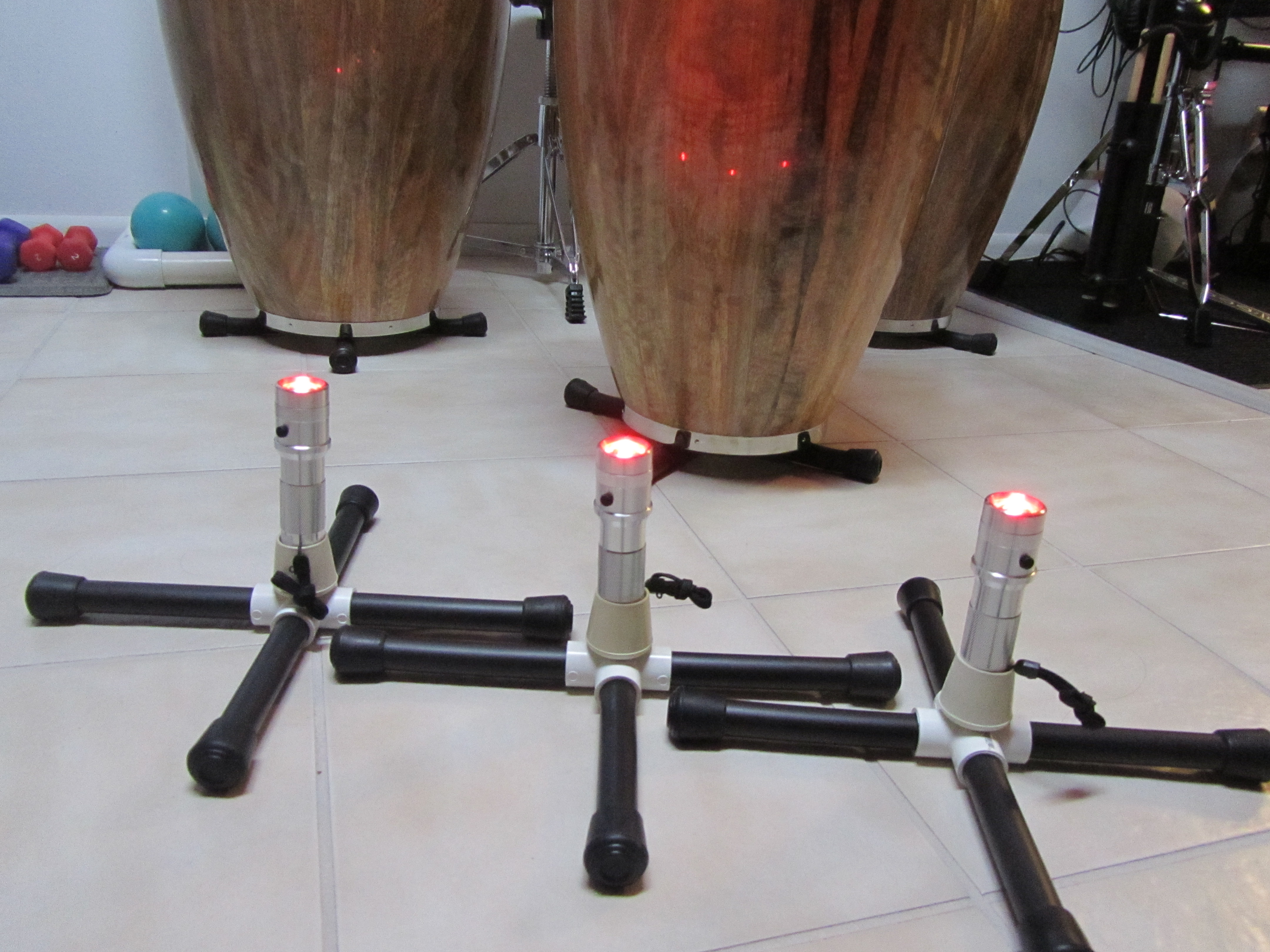 I wanted to share some information on a set of conga stands that I have been testing/using now for quite some time. I am 100% satisfied with them for a number of reasons. These great little stands hold your drum up off the floor just enough to let the bass come out. The stands will protect any floor you play on. They are super light weight. They fold up very small. I actually carry them in my percussion bag and they do not add any noticeable weight. The stands are only $13.50 each. $12.50 each for two or more. Purchase 4 or more and get a free bag. (While supplies last) USPS shipping would be extra. They can also be fitted with a light for a cool effect. As I said I have used and abused these stands and they really hold up. Super light weight and very affordable. I really like these stands and I believe you will also enjoy them. Simple design and very funcional.