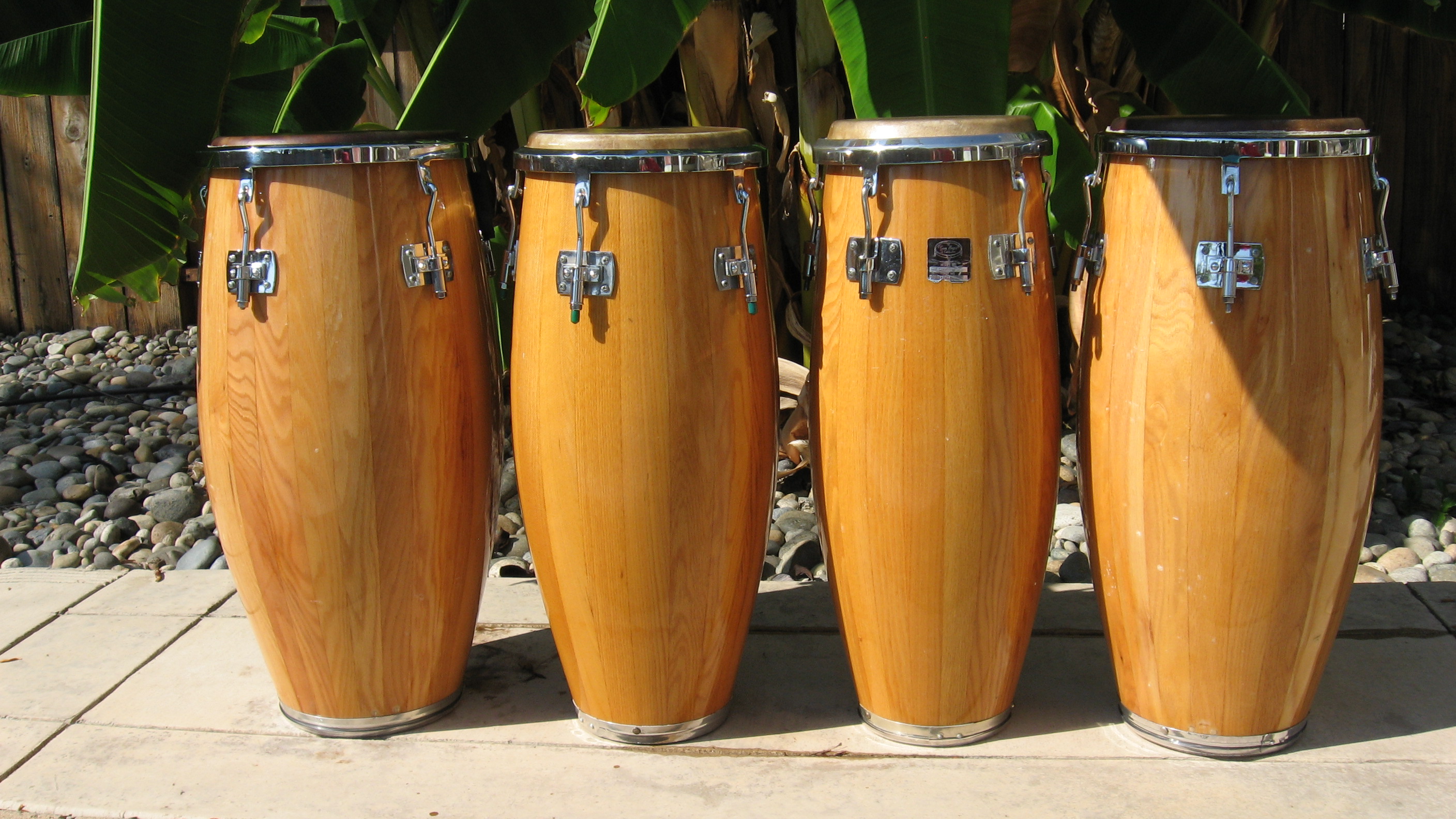 This set of Gon Bops are on ebay for 950 buy it now if interested. They are a matched set except for the side mounting brackets. One of the drums has these side brackets that I have never seen before on a Gon Bops and wondered if anybody knows about these or has seen them? Just curious as this is totally new to me . Here is the ebay link to these drums...