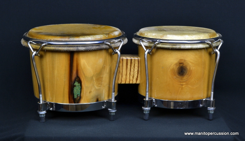 More exotic solid shell bongos from Manito Percussion. These are Silver Maple Shells with California Olive Bridge, Malachite stone inlay