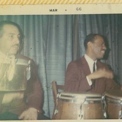 Here are two of the "baddest" rhythm players of all time. Tommy Lopez on 2 Junior Tirado congas and Manny Oquendo on bongo', you can see his Leedy Ludwig Humberto Morales timbales. That photo is dated 1966, I'll give my "left cojon" to have those Junior congas today, I have the Humberto timbs.