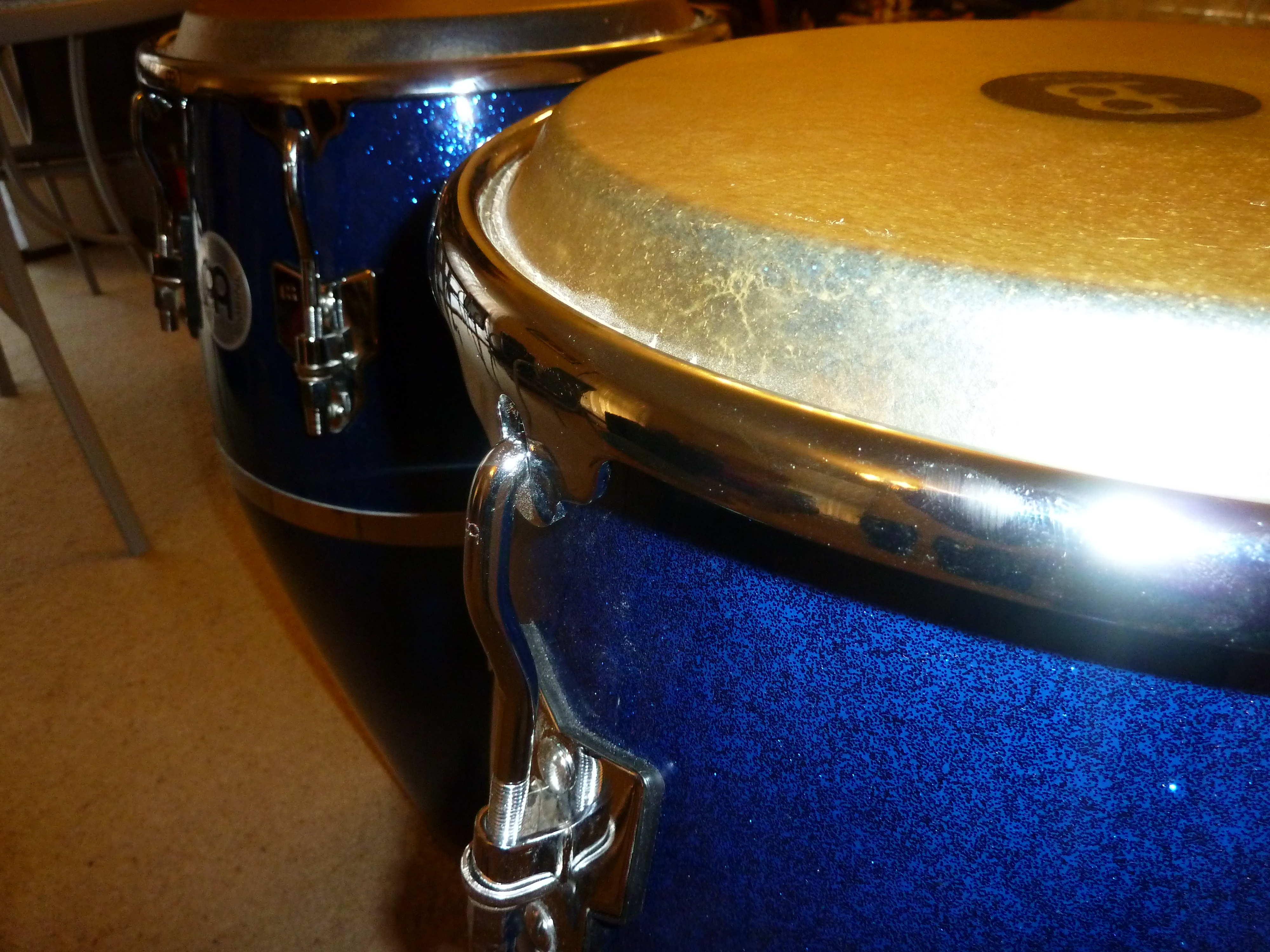 Meinls version of a comfort curve rim was interesting, though I prefer traditional hardware, I was surprised with the comfort found in the rim. Overall finish on the drums and hardware/chroming etc is fantastic. Massive volume too. Later down the track, I may mount up my nice thick Cuban skins I brought back. But for now the factory ones will do just fine. They do have some decent weight to them, much heavier than a Patato or Matador, almost as heavy as a Galaxy fiberglass, but not quite as much. (from what I remember helping carry my friends drums) The shells do not have handles, no biggy. I use my carry cases to get all my drums around.