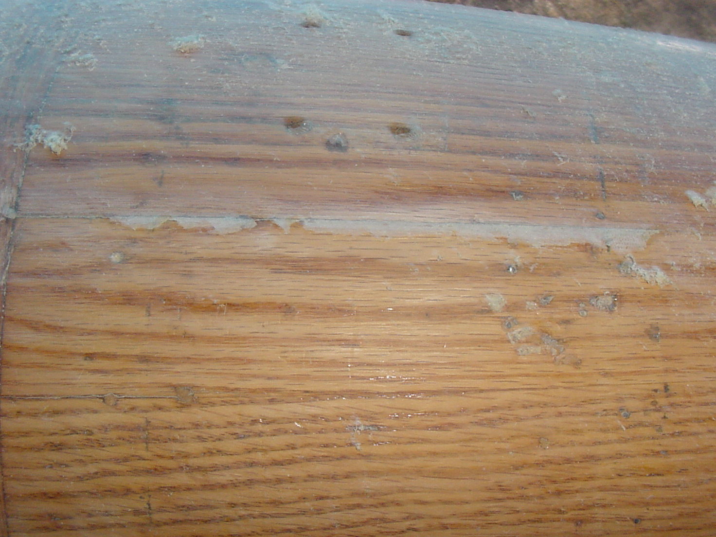 All of these old beat up vintage shells have a ton of imperfections. ( pic 30) For those of you with pristine shells, good for you, you hit the lottery! For everybody else, it’s decision time!. The depth of scratches, dents, gouges, lug rash, extra holes, out of set staves etc. need to be considered here. Some things are going to sand out, and some things are here to stay, . Most things will sand out on most shells. Some things will not, without changing the shape of the drum permanently. We want to avoid changing the shape of the shell from bad to worse! Ask your self this question, many times, before you do a process. “Will this thing I’m about to do, make the situation worse?” Ask that a lot! This poses a problem, especially on shells that are going to be left natural. ( Most old beaters don’t look so good up close, left natural). You will have to fill the imperfections with some kind of filler. This is a cosmetic choice, it’s up to you.