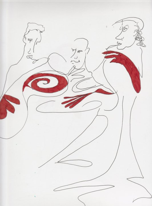 Another caricature of myself on bongos, accompanying a poet at an all-women poetry event. I really like these little drawings.