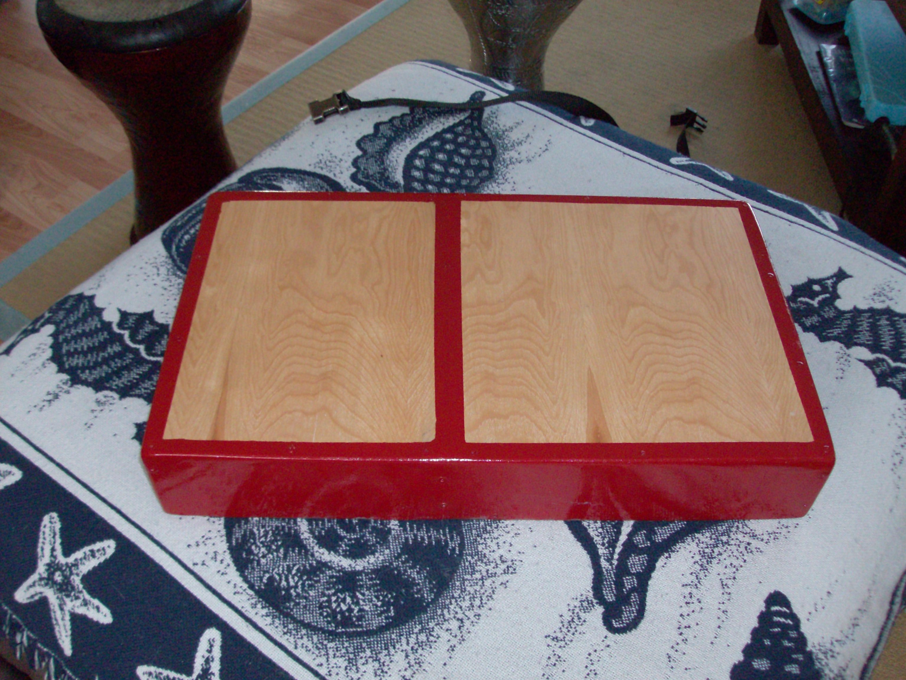 Almost open tones are produced by hitting the cajon very close to the edges of the playing board. You can say, that it is more or less the body below the playing board which makes the sound´s character (similar to accented muffled edge-tones on a macho). Therefore you can also think about taking a thick poplar plywood (15mm, 18mm) for the body, which is not as heavy as birch, but gives rather clear tones. The disadvance of poplar is it´s bad surface quality.