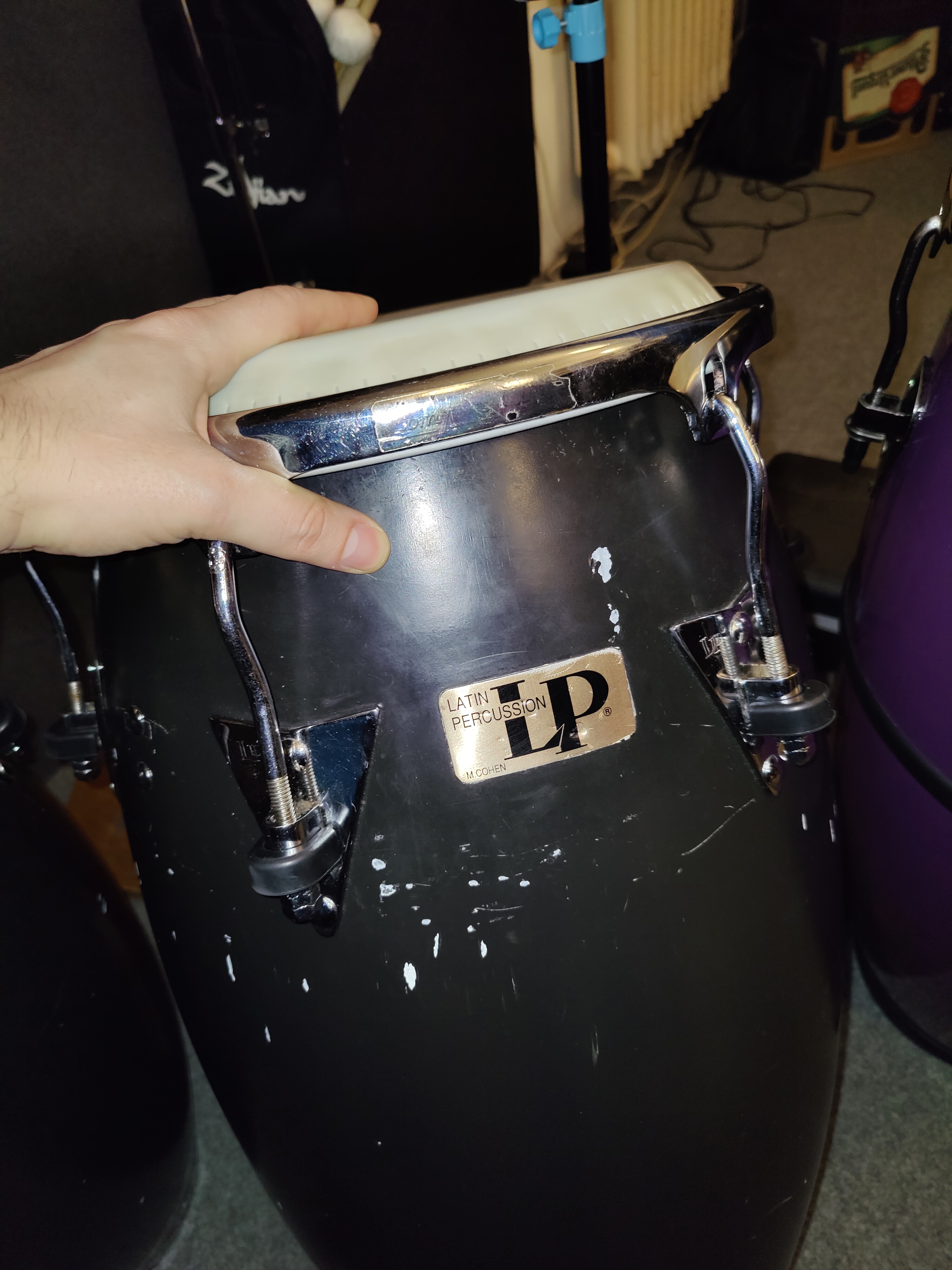 I managed to take some pictures of the mentioned pair of congas. These are 11" Quinto and 11 3/4" Conga. I would give anything for a matching tumba..