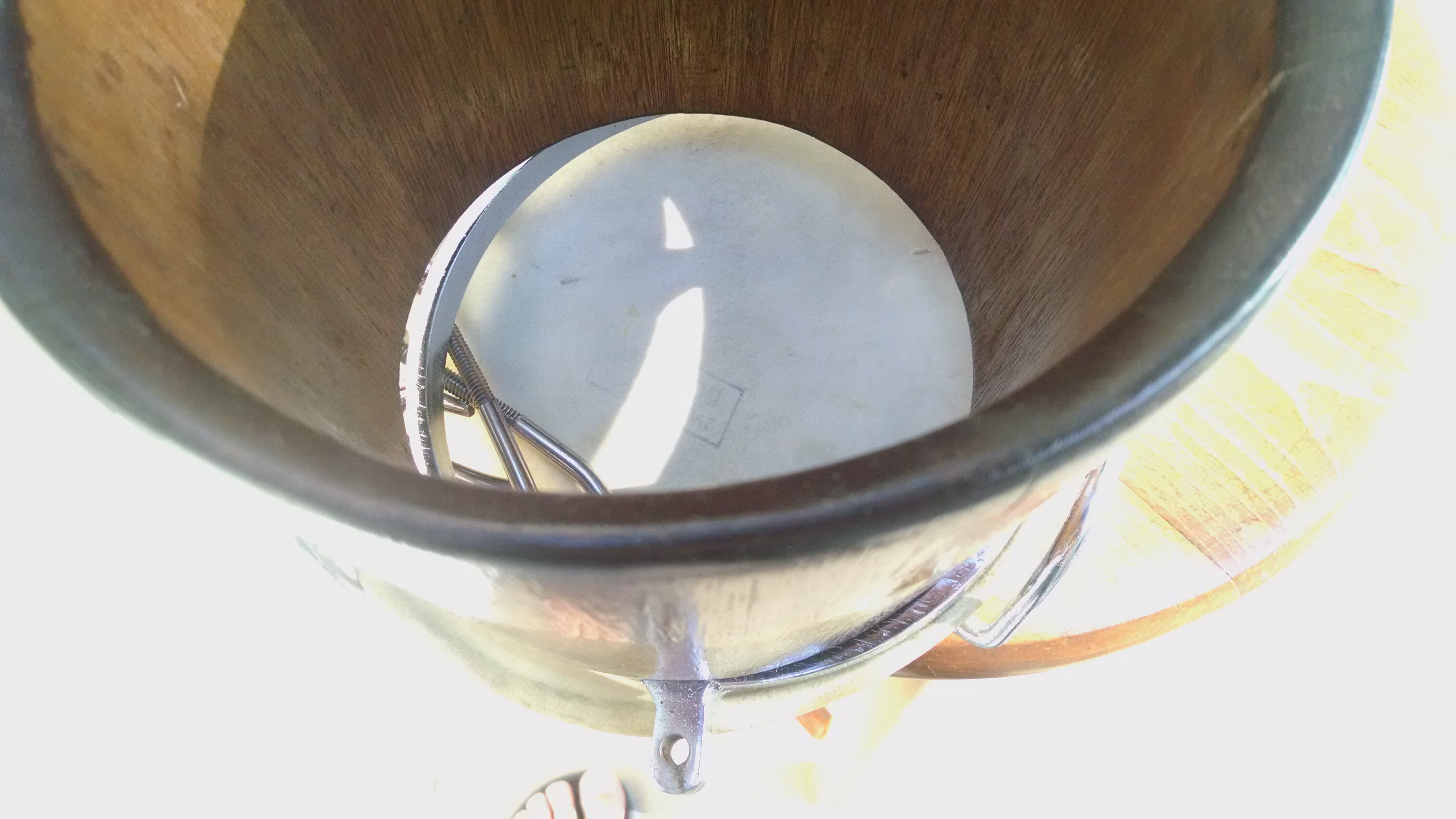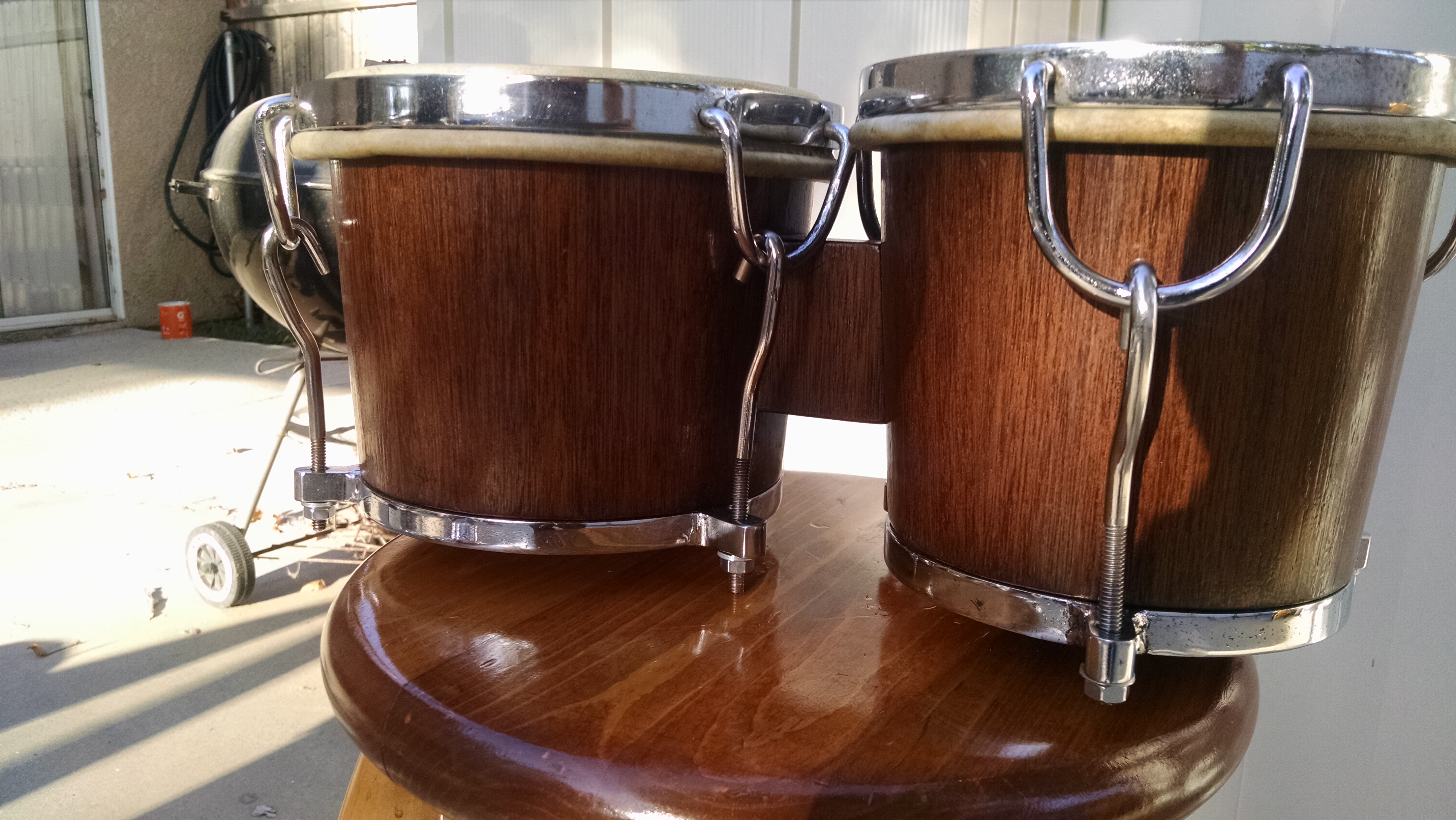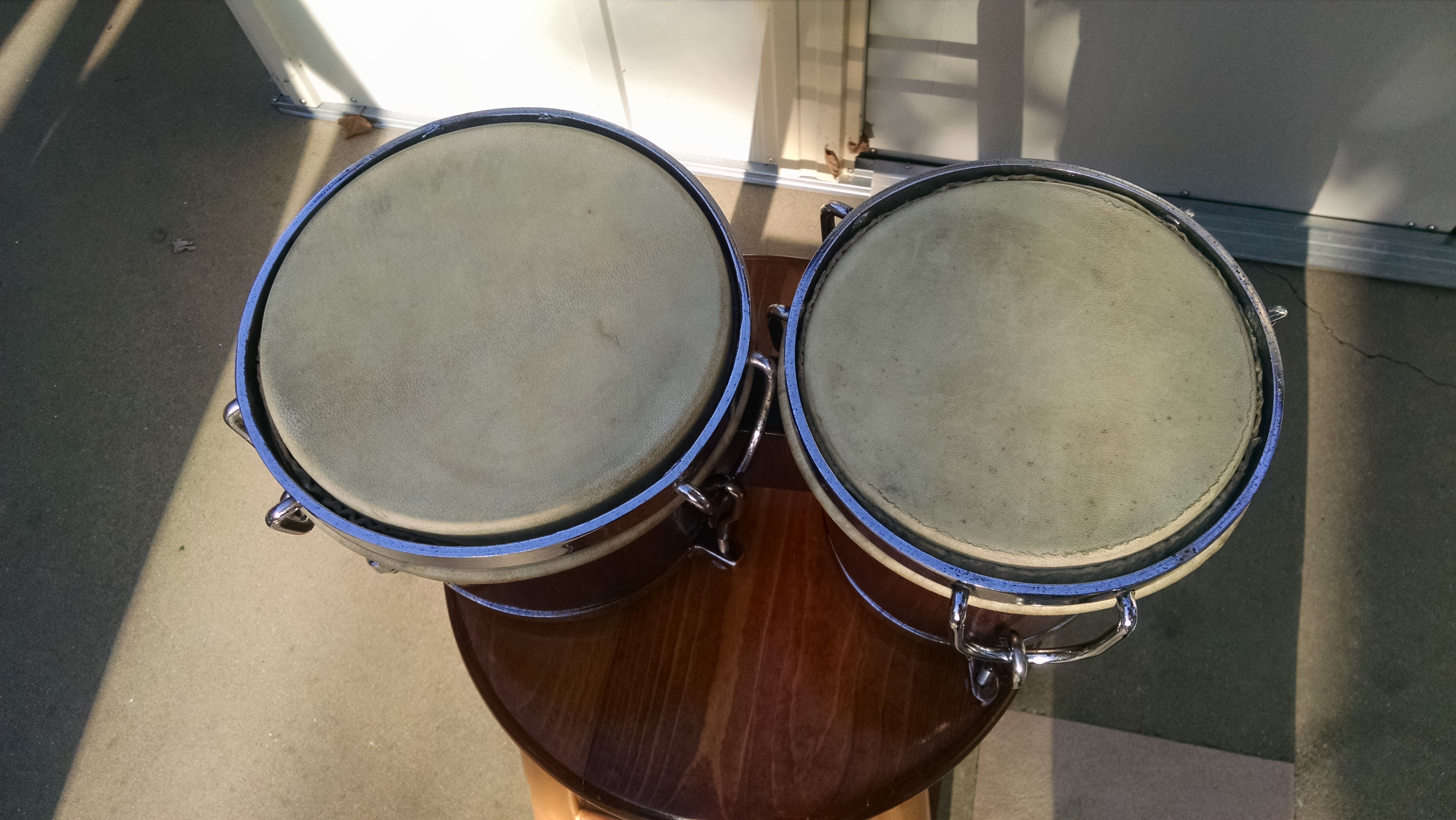 Bongoceros, Have any of you ever seen this type of bongo with three lugs? It is quality built bongo of mahogany with a nice bearing edge and although the hardware is only three lug it is solid. I found it at the local Goodwill, casi regalado. I hope someone will have an idea of it's origins. Thanks.
