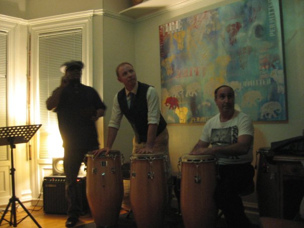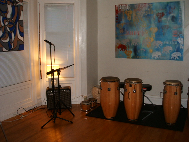 bongosnotbombs wrote:That's one of those new fangled 5 string bass guitars to the left of the picture. The congas are really