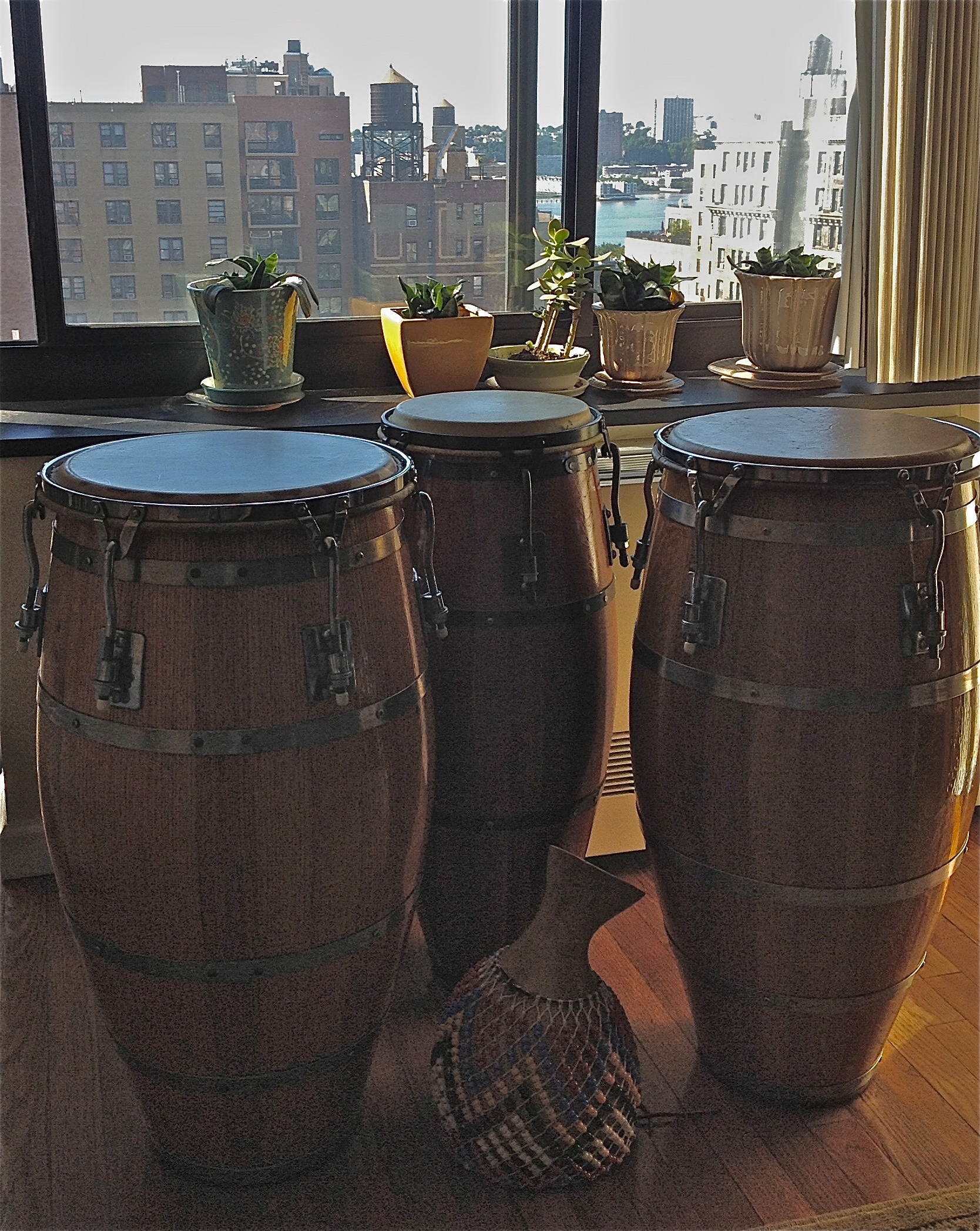 The 11" quinto sits beside my desk in my home office. Talk on the phone, do a little rip and practice, write a report, listen to some tunes - rough life :D Real nice bass response in that little drum!